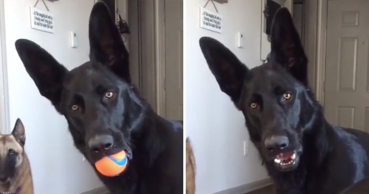 傻眼汪汪!黑德牧叼球球「聽小孩哭聲」嚇到掉下來 網笑翻:旁邊那隻也定格是怎樣~