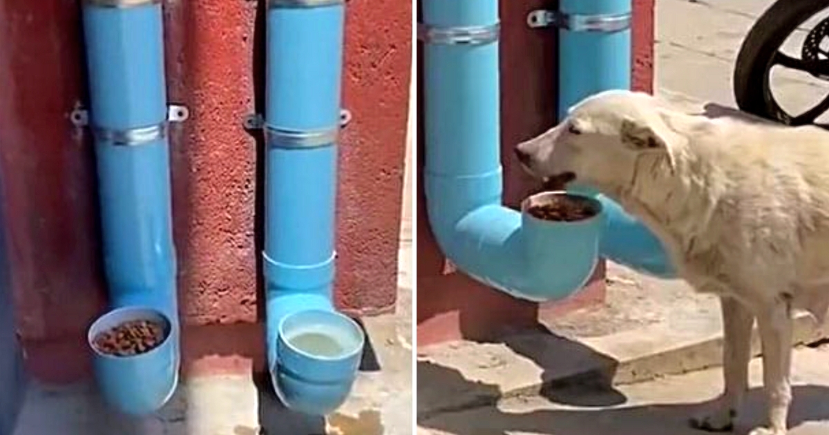 夏天路邊浪汪渴瘋!他特製簡易「飲水機、餵食器」 汪汪開心享用畫面曝