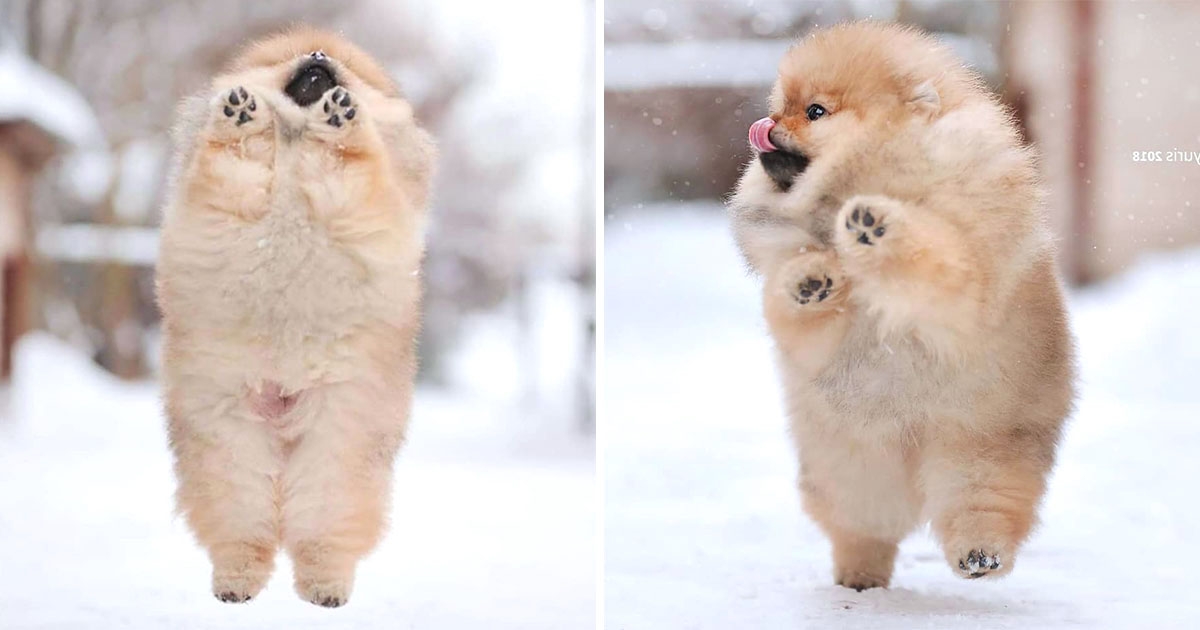 呆萌小博美在雪地上「玩嗨了」 柔軟肚皮還「伸出小舌頭」激萌:吃雪雪~