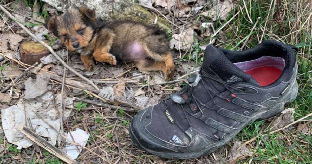 一隻舊鞋就是牠的家! 好心人發現飢餓小浪汪果斷「包辦狗生」