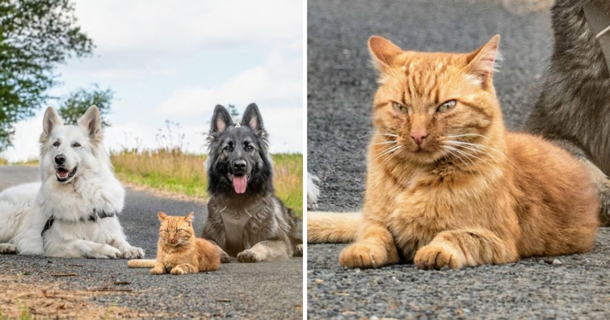 連趴姿都與眾不同!小貓獲救「被狗帶大」 行為狗裡狗氣:以為自己是「橘色牧羊犬」