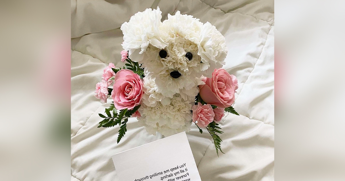 女友愛狗又愛花!貼心男友「送出神複製」 旁邊愛犬困惑:給偶的嗎?