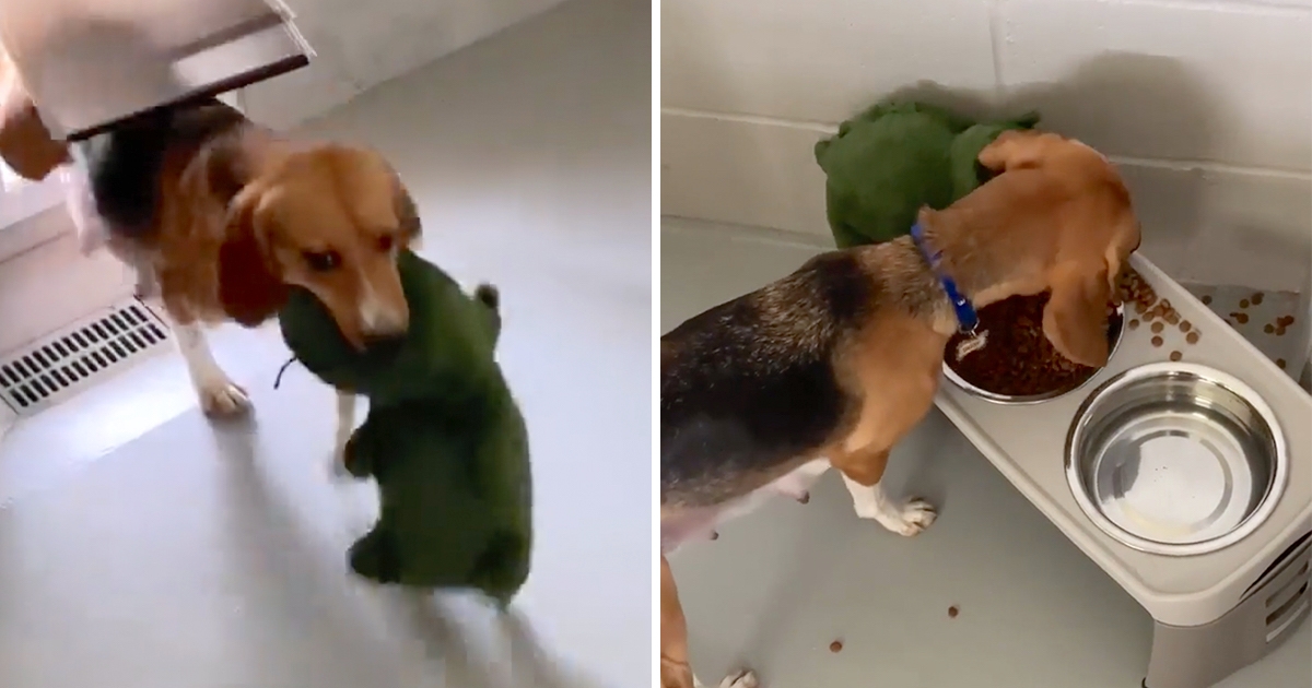 繁殖米格魯獲救「根本不懂玩耍」 入手鱷魚娃娃超開勳:也要餵飯飯給牠吃!