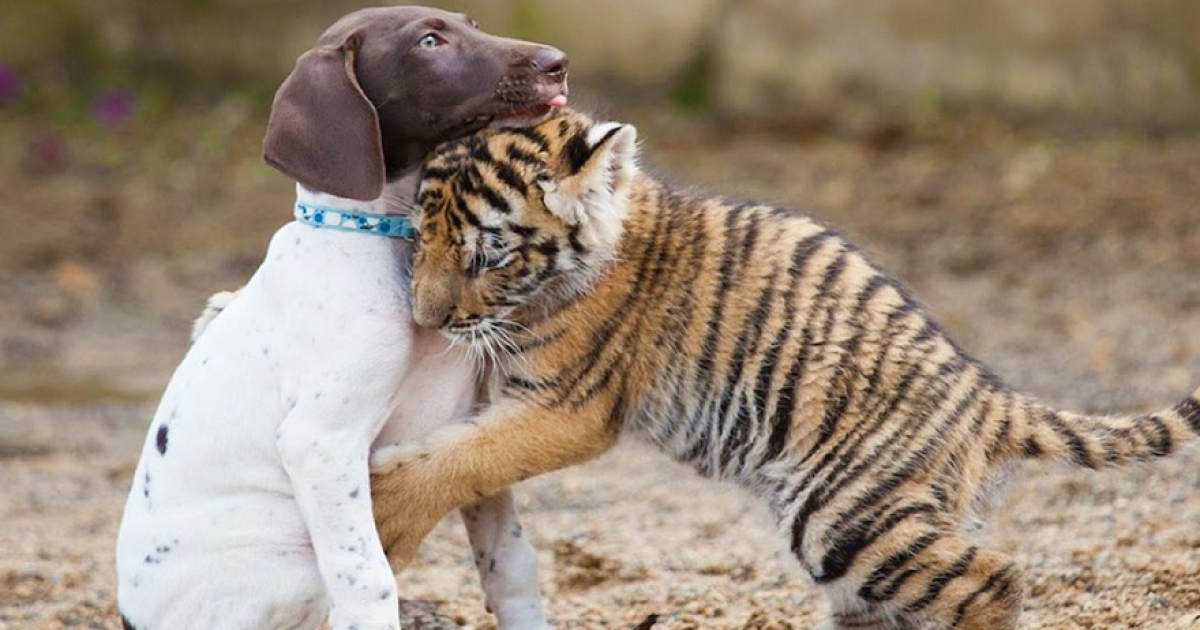 孟加拉幼虎從小沒家人朋友 遇到暖心狗狗「抱緊當麻吉」:不要離開我