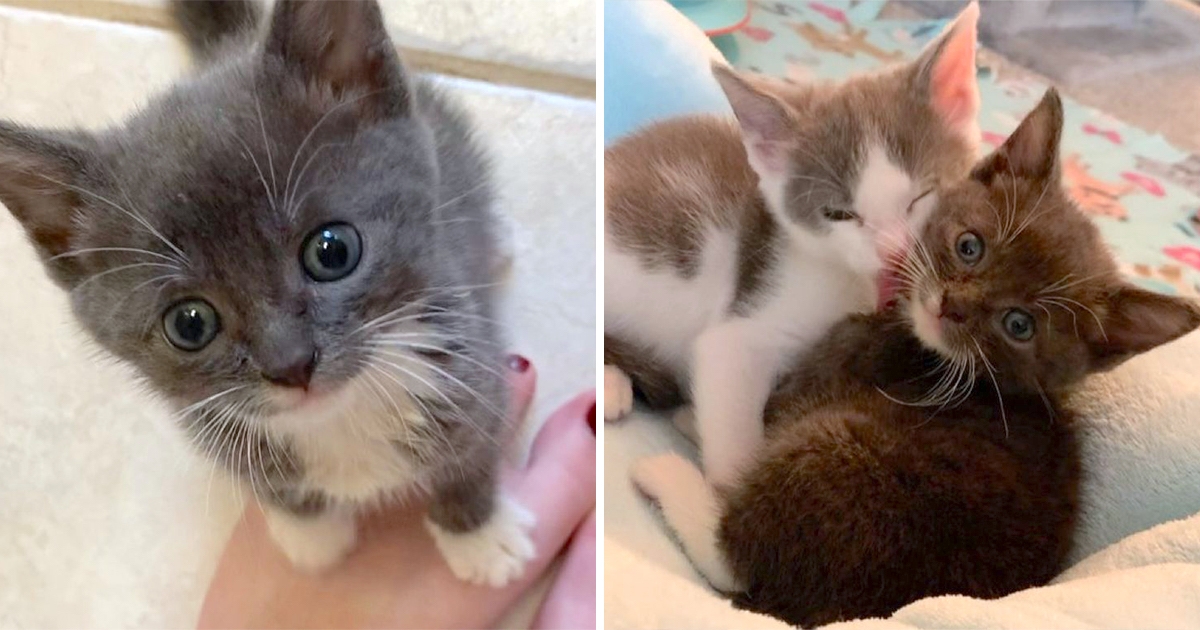孤兒小黑喵獲救沒玩伴 遇到「灰白雙胞胎姊妹」抱緊不放開:以後就是一家人❤