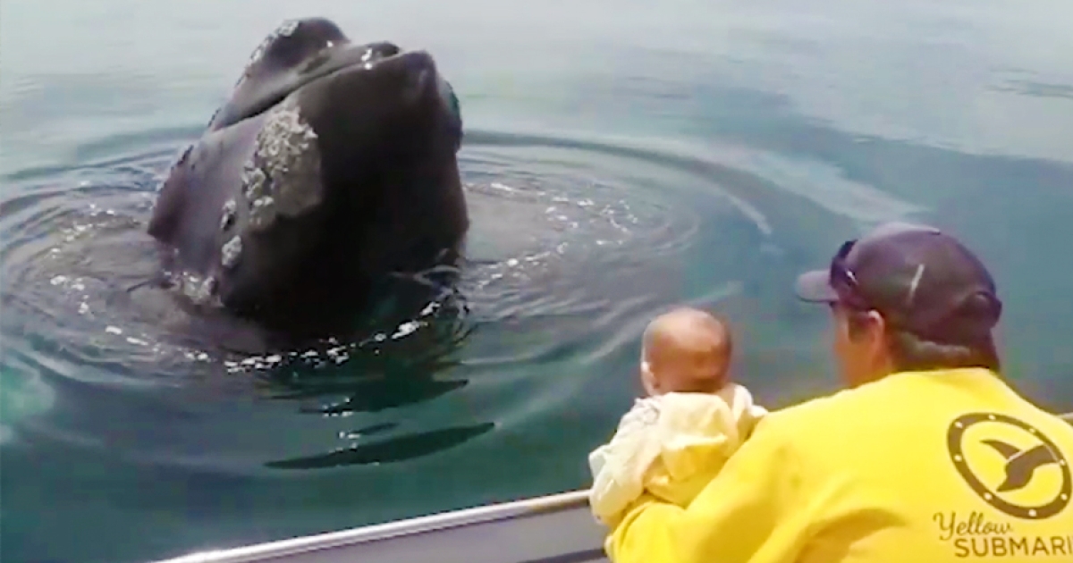 野生鯨魚也愛跟小寶寶玩 默默游到船邊「躲貓貓」逗她笑