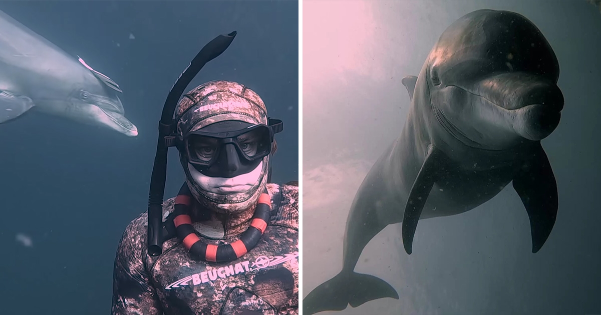 海底的朋友!潛水遇海豚主動搭訕 「一起悠遊」還送蛙鞋當禮物:你的鰭~