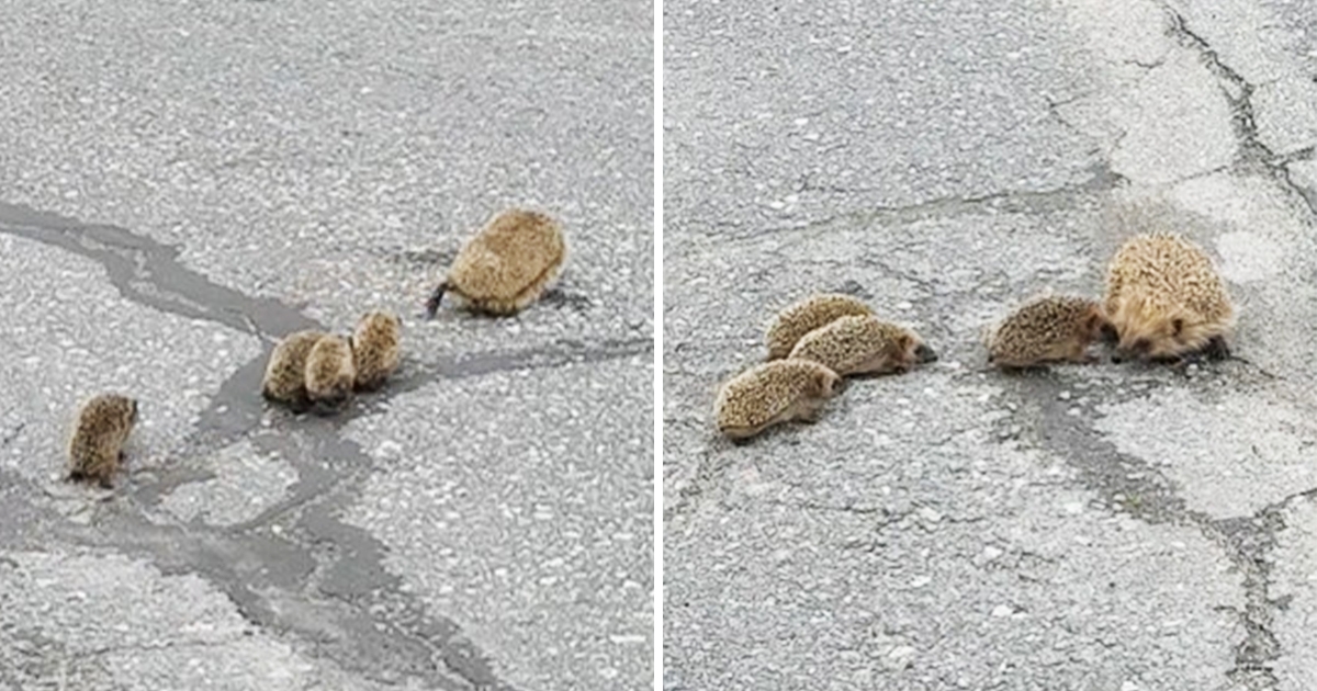 馬麻等我! 刺蝟媽「帶隊過馬路」寶寶一路奶音萌叫 好心女「護送過馬路」:路上小心唷~