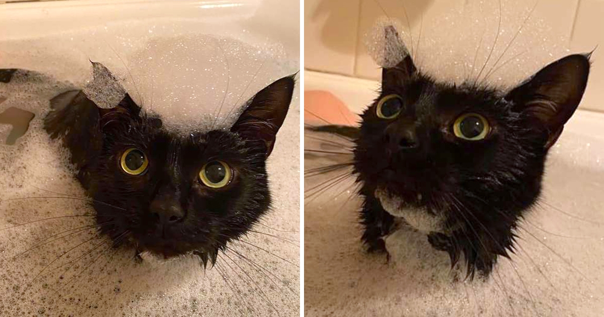 罕見不怕水!黑喵獲救「洗香香」從此愛上 現在每看馬麻沐浴就跟:一起泡嘛~
