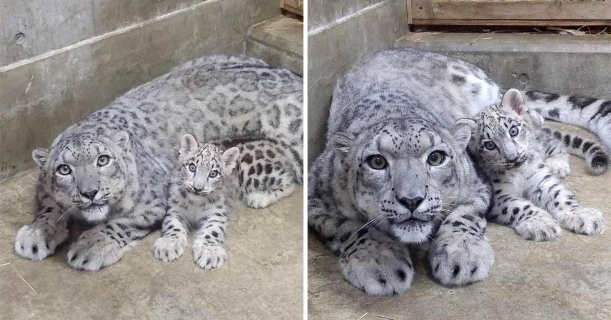 小雪豹「遺傳到媽媽」也很愛拍照! 一大一小看鏡頭張「無辜大眼」:拍可愛一點喔~