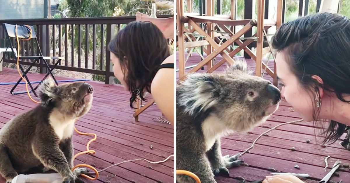 無尾熊闖進後院討水討親親 少女靠近被萌倒:牠完全不怕我欸
