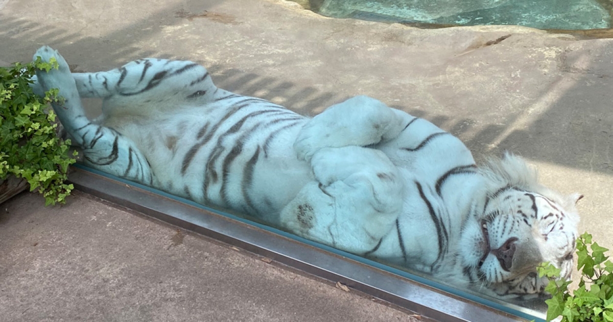 辣個肚肚!動物園大貓「翻肚折手手」睡午覺 網友見牠睡翻笑:我家貓怎在這