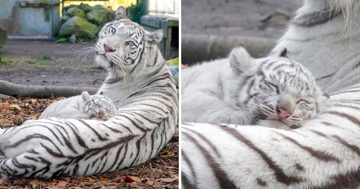 調皮虎寶玩累「一秒斷電」! 躺懷裡露「天使睡顏」虎媽回眸:這偶生的沒錯~