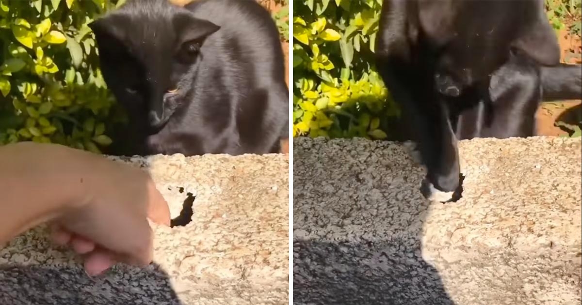鑰匙掉洞掏不出! 「熟識黑貓」路過秒伸出援爪:以後小心一點嘍~