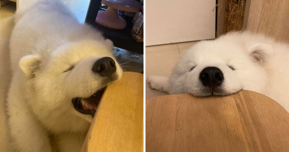 迷惑行為!薩摩耶睡到一半「狂啃桌腳」 主人笑:夢裡有什麼美食?