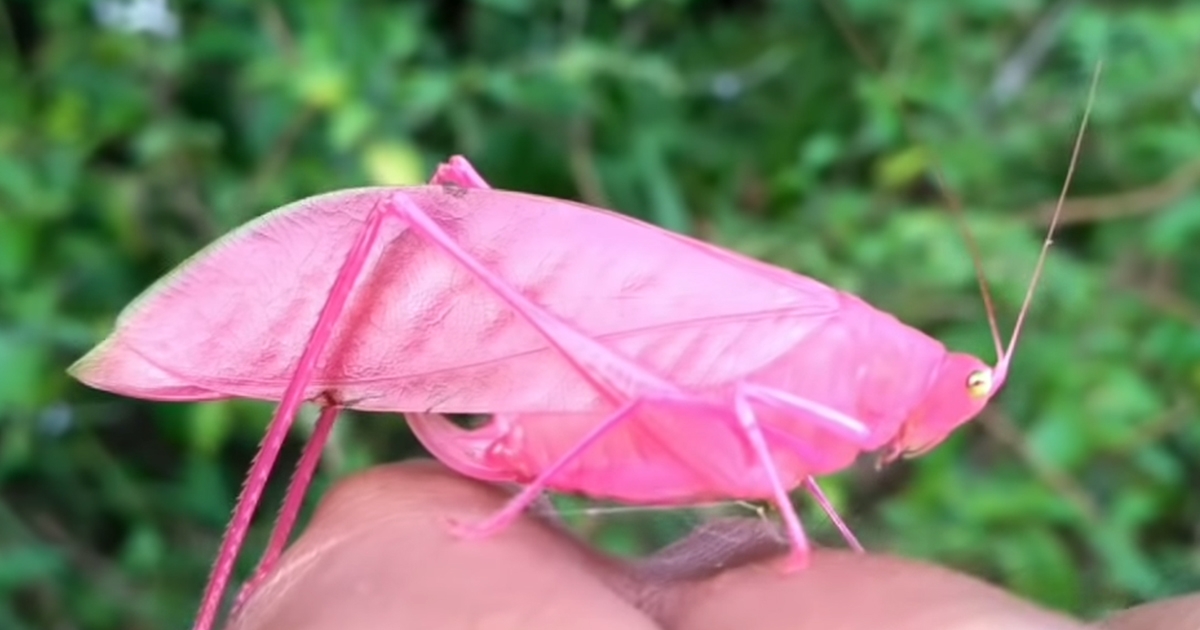 野外捕捉罕見「色違蚱蜢」 最美鮮豔粉紅色:像繪本裡跑出來的