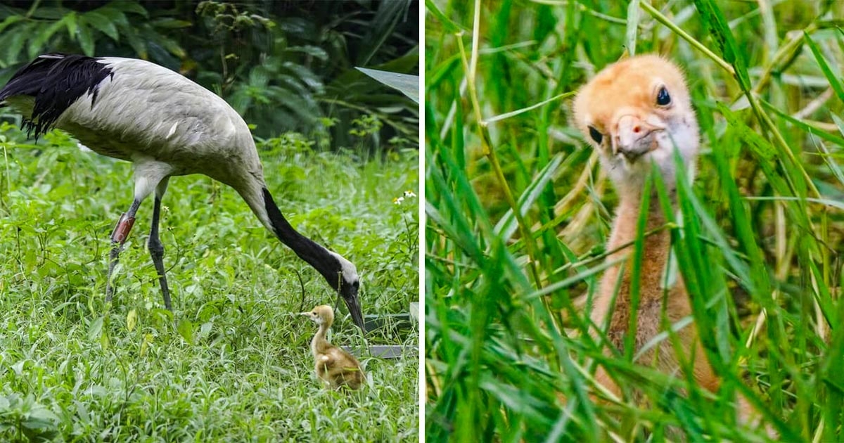 來台11年!北市動物園丹頂鶴「終於有好消息」 升格爸媽帶雛鳥趴趴走超可愛