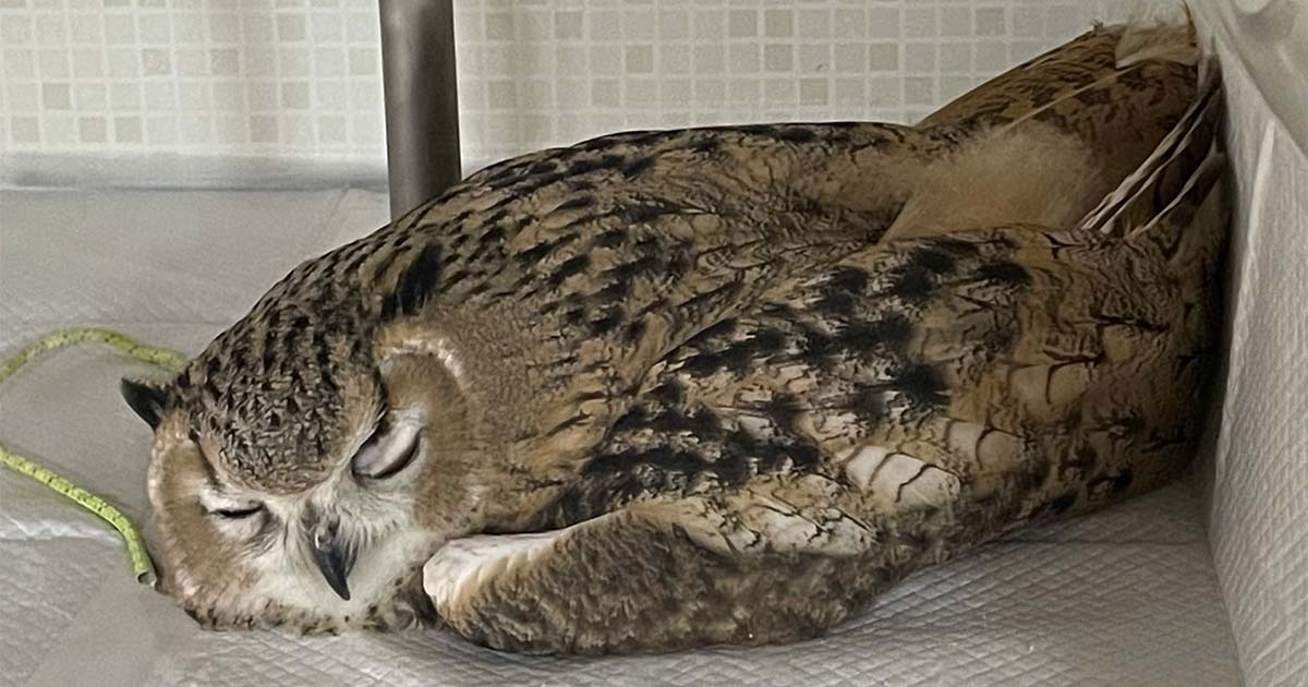 貓頭鷹躺地「折手手」睡到融化! 網友笑虧:怪不得名字有貓~