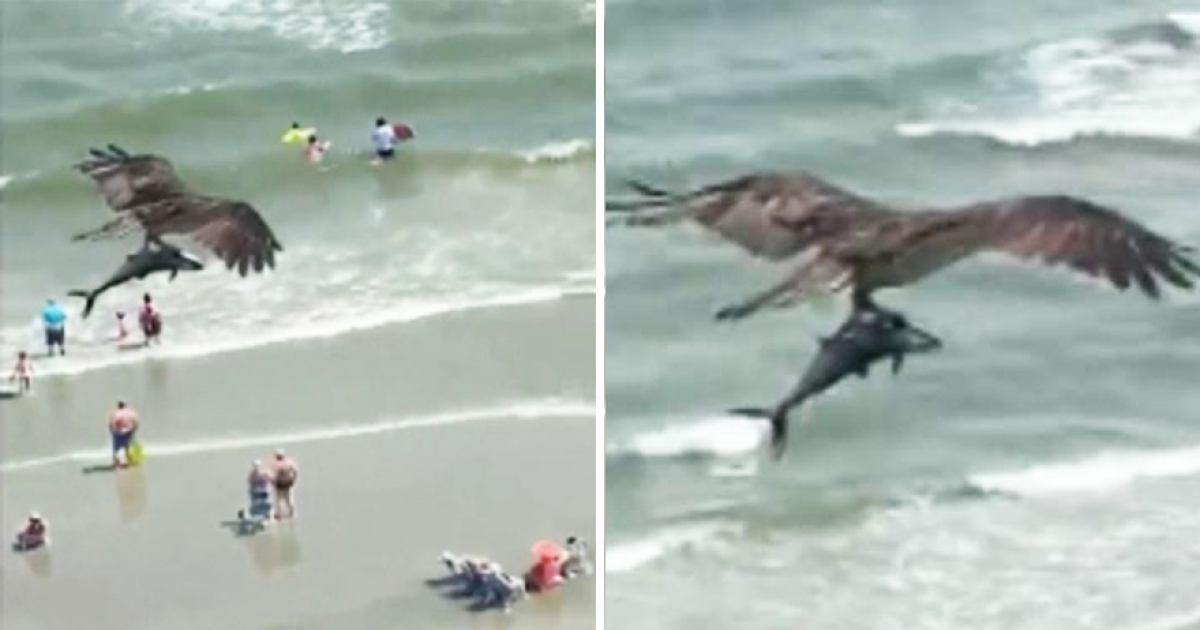 巨鳥抓「生猛大魚」掠過沙灘! 網友驚嘆:牠抓的是鯊魚嗎?!
