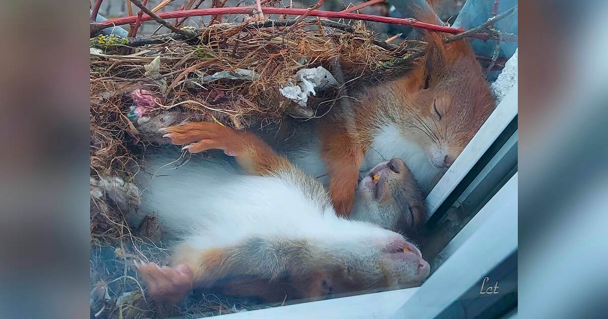 松鼠跑來窗台定居! 他隔窗驚喜拍下「午睡全家福」笑了:真的不把我當外人~