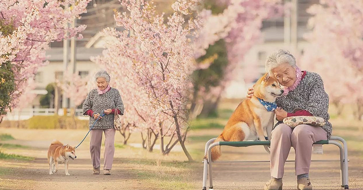 「讓我陪泥一輩子」柴柴和85歲嬤在櫻花樹下合照 網友感動喊:願時光不老