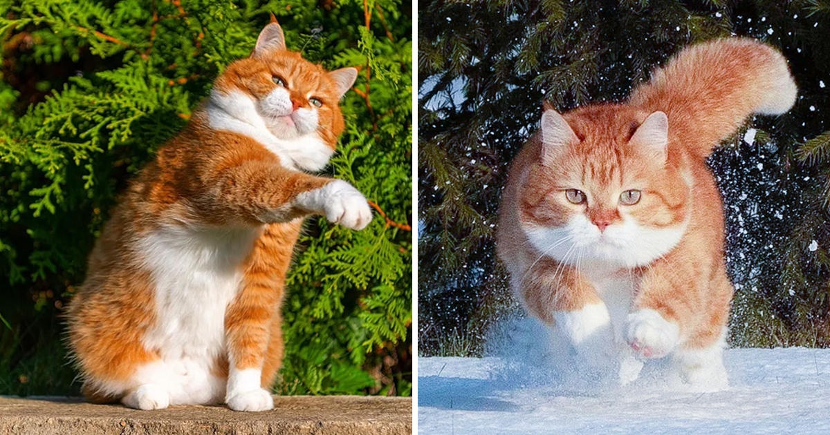 白手套好萌♡ 慵懶胖橘「肥美雙下巴」超欠摸 一碰到雪「畫風秒帥」:猛虎下山啦!