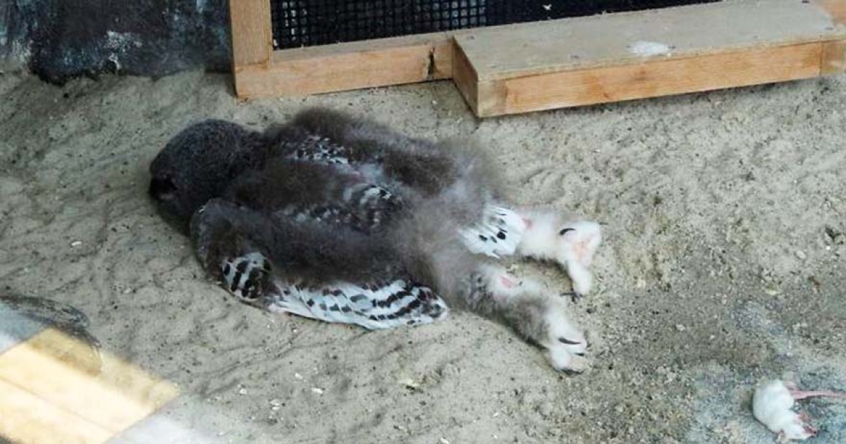 頭太重只能倒著睡! 網分享貓頭鷹寶寶「融化式睡姿」:露鳥仔腳太可愛❤