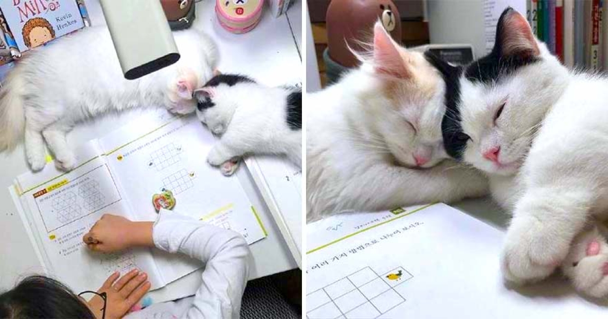 作業寫完一定要跟我們玩哦~ 2隻貓貓「開靜音趴等」自己睡著了❤