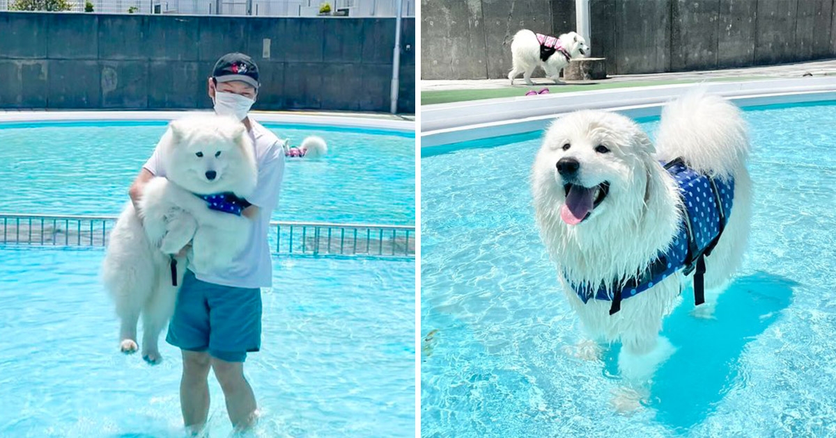 把拔我不敢!薩摩耶看玩水「縮懷裡折手手」 下水後超反差:我好會游欸~