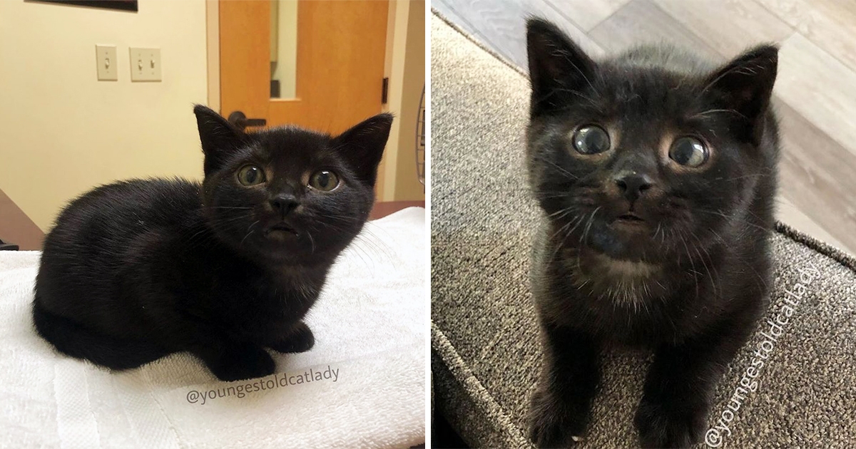 救援小黑貓發現「旁邊同伴只有牠一半大」 善心女領回家「現在已長成天使」