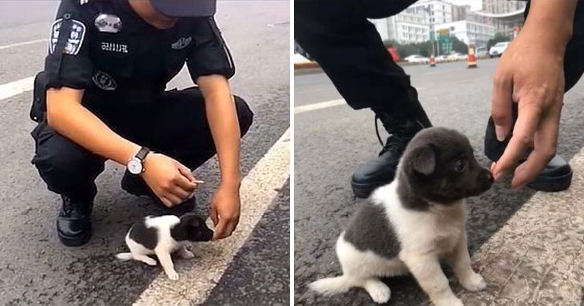 跟牠混有前途!流浪小奶「賴上警犬」反被收隊 警犬:以後偶罩你呀~