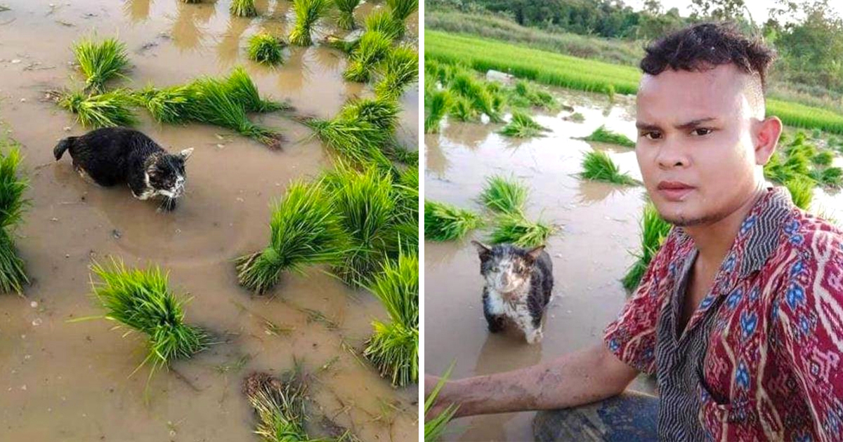 主人「下田插秧」熱心奶牛貓偏要幫忙 網友笑:變成真正的牛了嗎?