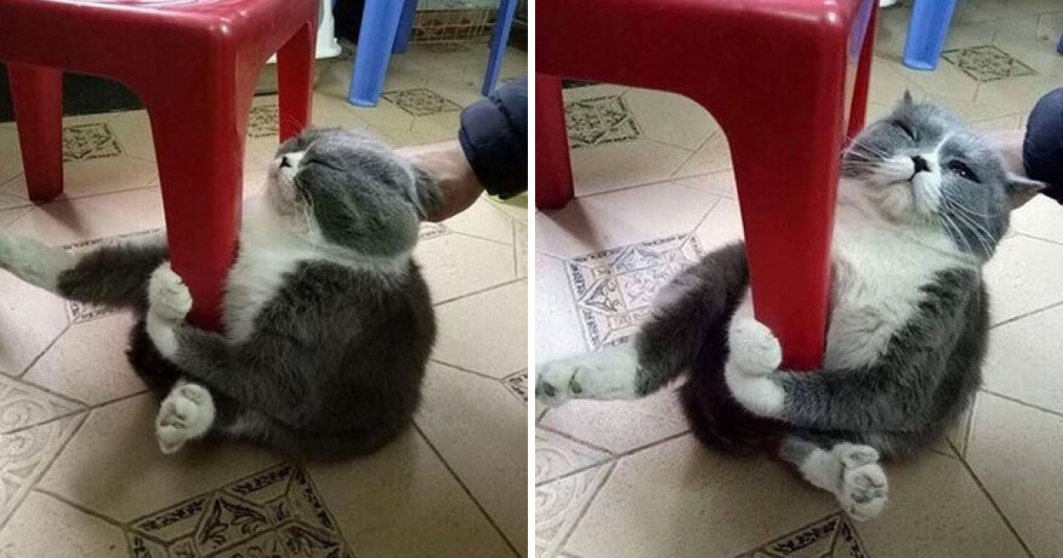 不要逼偶~胖喵「緊抱椅腳」毫不屈服 主人氣笑:只是洗個澡至於嗎?