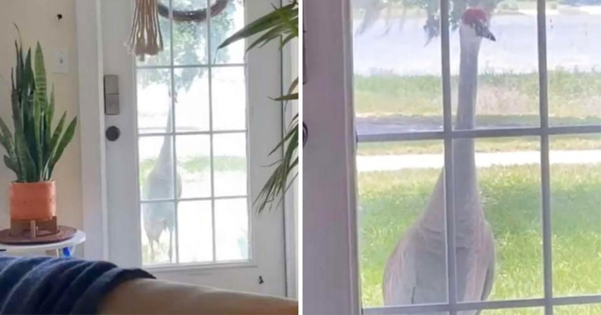 懂人性的鶴!每天固定來拜訪成好友 還會「禮貌敲門」:到吃飯飯時間嘍~