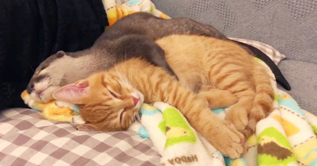 你就是偶的枕頭~ 貓咪和水獺的「黏TT日常」 喵皇任由「抱著睡」畫面太溫馨