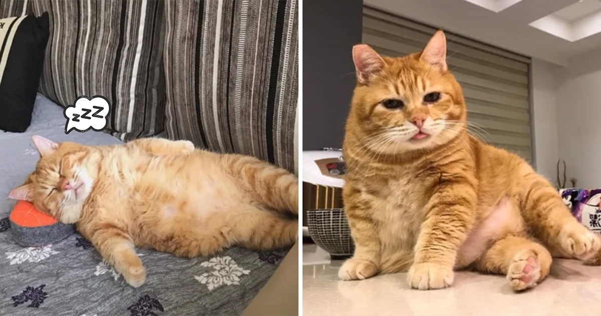 彷彿看見吃飽的自己! 好吃懶做橘貓「爽睡整天」攤肚皮:偶只是遺落人間的一條吐司~