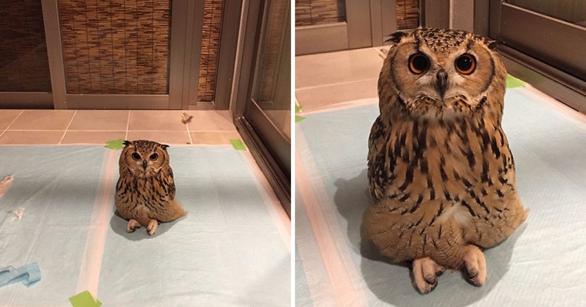 習得特技!貓頭鷹「盤腿坐好」模樣超怪萌 網笑:裡面是大叔嗎?