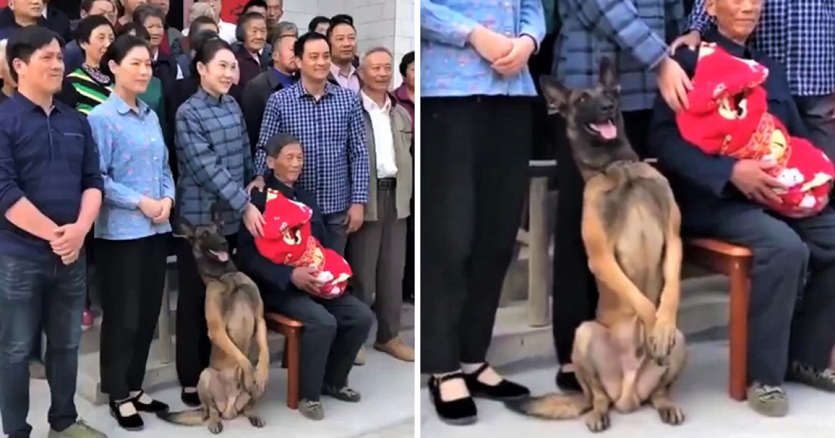來拍全家福~汪汪一聽也「站起來擺POSE」 網萌翻:牠也是家人❤