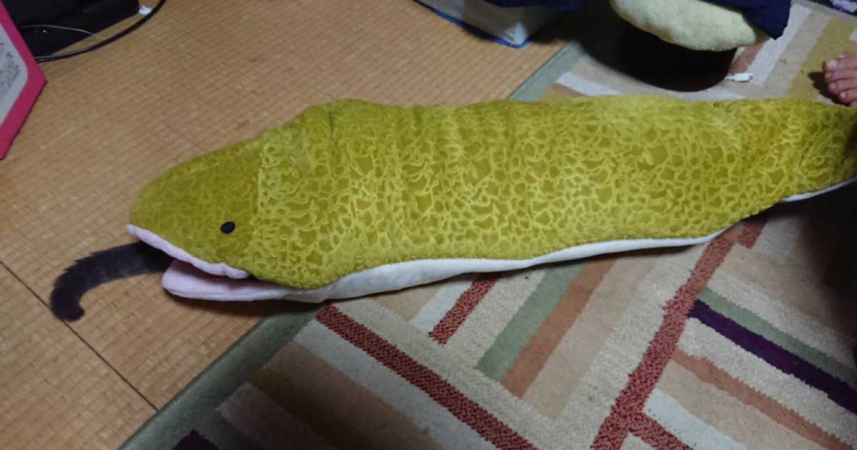 貓貓「整個身體」被蟒蛇吞掉! 翻面後發現牠「一臉滿足」:被吃也這麼開心~