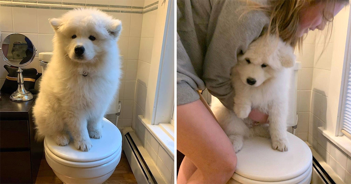 想學主人蹲馬桶上廁所 小薩摩耶「不知掀馬桶蓋」呆坐:然後捏~