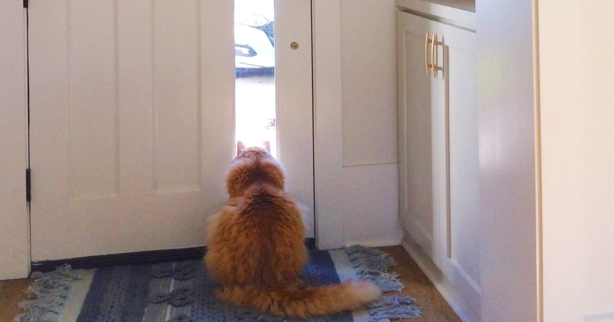 5點準時守門!橘貓望穿秋水「等爸回家」 媽背後無奈:他已經在家上班1個月了