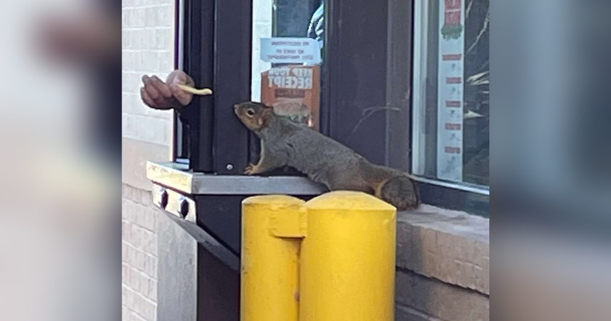 得來速驚見「好肥美松鼠」耐心等待! 店員送上香噴噴薯條…牠滿足離開