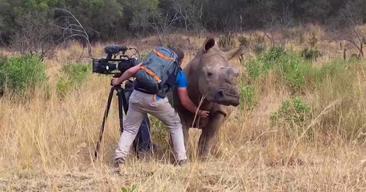 有犀牛靠近! 攝影師嚇到不敢動…沒想到「牠撒嬌賣萌」:快給人家摸摸~