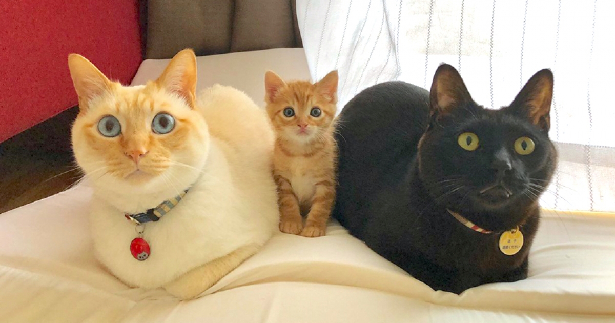 以為會被欺負…小浪橘到新家「竟被大貓寵」 排排坐成「全家福」迎接貓奴