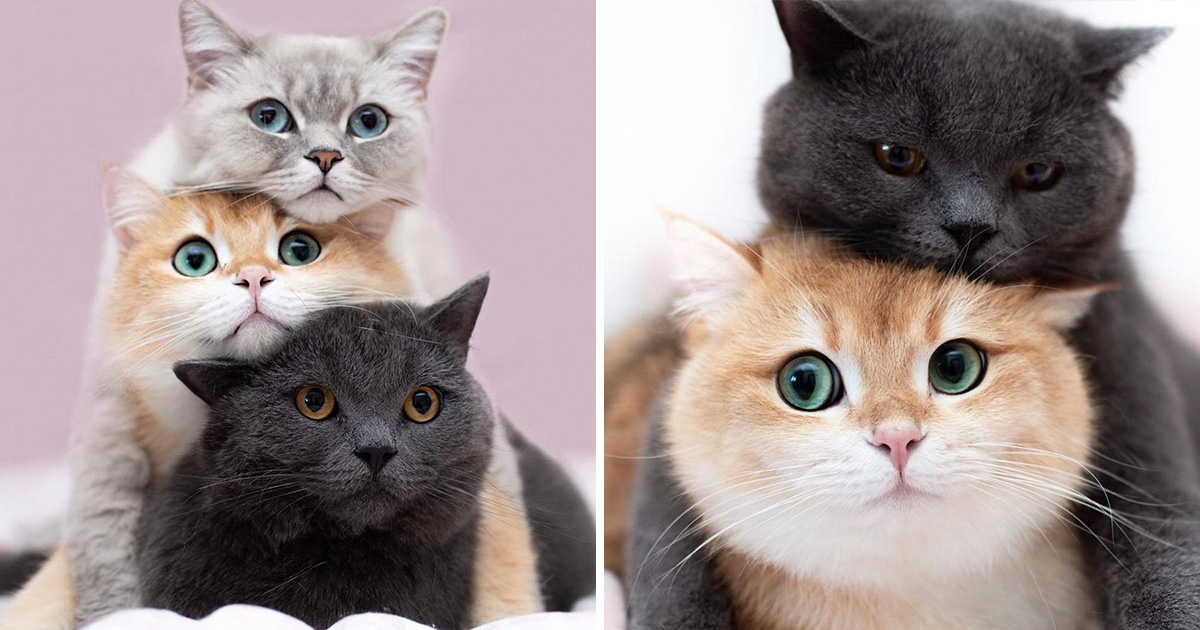 感情超好!三色貓咪愛玩「疊疊貓」 最底下那隻:頭重重der…