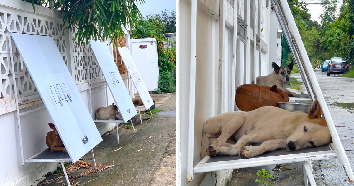 你們不用再淋雨了!管理員大叔為浪浪「設遮雨棚」 「一汪一格」安心甜睡♡