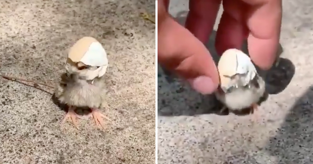 安全帽脫不下來~ 幼鳥「蛋殼卡住」啾啾叫不停 網友助脫帽「一臉呆樣」:太萌惹♥
