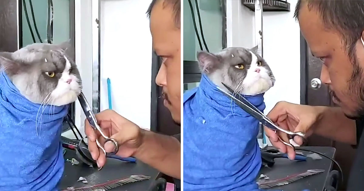 你竟然敢對朕下手? 臭臉貓「全程瞪美容師」結束合照不爽到最高點