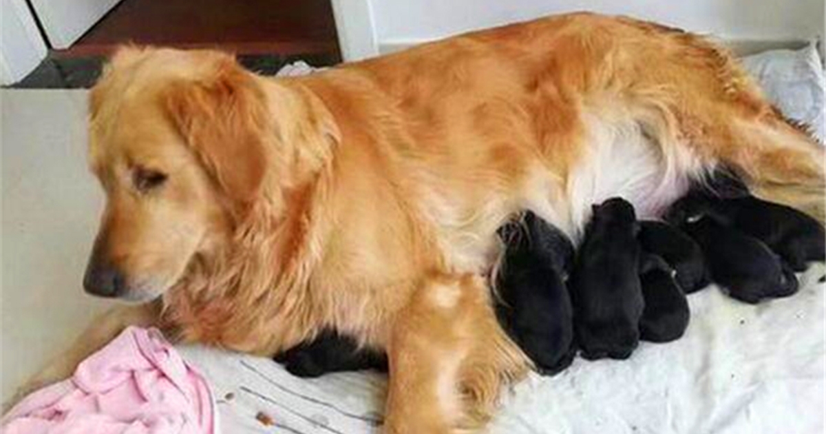 金金媽生下一窩小煤炭 主人超不解:明明爸爸也是金毛啊!