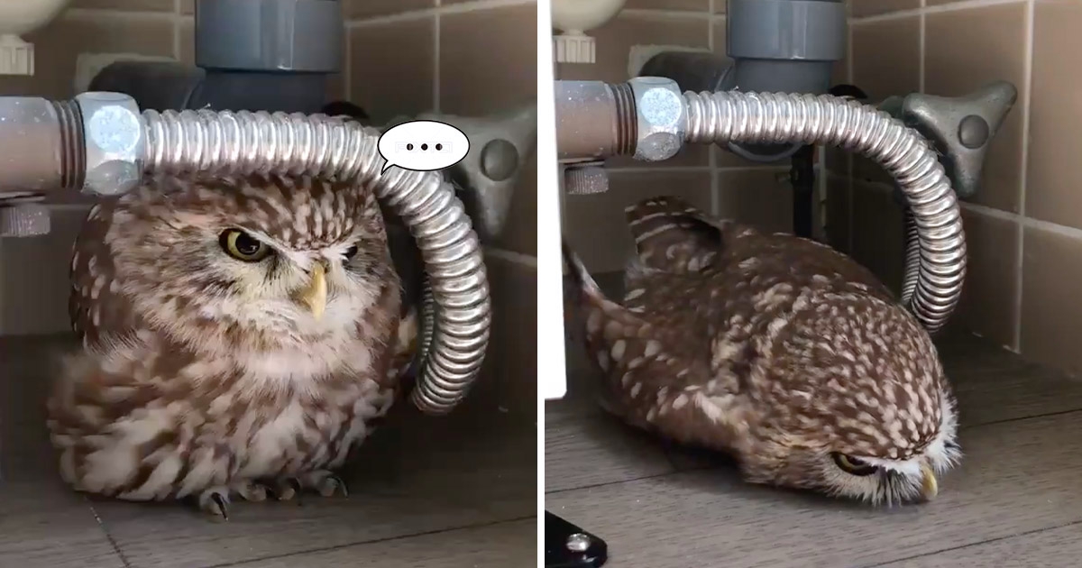 最臭臉避暑!貓頭鷹「一臉嚴肅」躲角落散熱 「膨起來又消風」網萌化:是氣球嗎♡